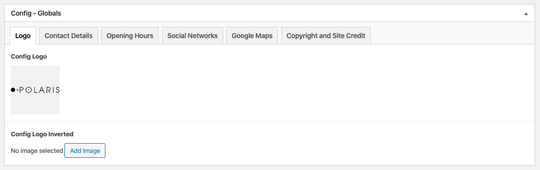 Here we can upload a brand logo for the site being developed. Ideally this is in SVG format for maximum quality.
